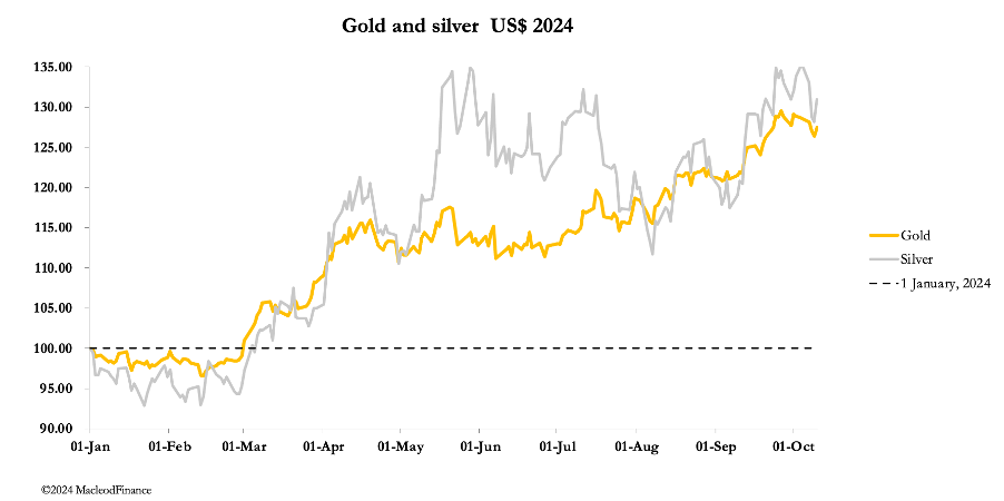 The temporary absence of Chinese demand coincided with the Golden Week holiday, with dealers returning on 8 October. It gave market-makers and bullion bank traders an opportunity to shake out speculative longs in western derivative markets. But Comex saw gold’s Open Interest decline by a paltry 11,000 contracts, before buyers stepped in buying all their positions back in only two sessions.