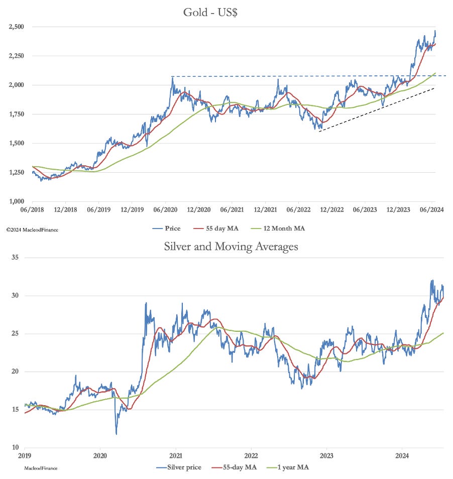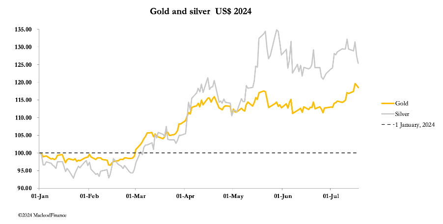 What technical analysis can’t tell us are fundamental factors, and it is here that we must use our judgement. This is why it is vital to understand the relationship between precious metals and credit, which is the lifeblood of modern economies. Doubtless, after five decades of dismissing gold as the ultimate form of money, the bullion banks simply regard gold as a trading counter, hoarded by those old fashioned enough to still believe in it. It gives them a trading counter suited to market manipulation as the hopes and fears of gold bugs are exploited.