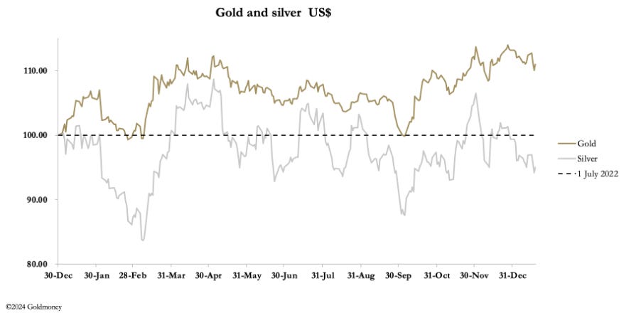 For now, market participants subscribe to the erroneous view that higher US interest rates are bad for gold, because of the increasing yield penalty. When the dollar is stable and the need to hedge out of it is minimal, this may be true. Indeed, in the 1980s gold was shorted in favour of long treasury bills, when it was clear that gold was no longer rising against the dollar. But today, this carry trade hardly exists with a short yen or euro and long dollar being a far better proposition. Furthermore, with central banks and presumably sovereign wealth funds also accumulating bullion, we have the extraordinary situation of gold being within whiskers of all-time highs in all major currencies, shortages of free supply in size, and the general public disinterested and uninvested.