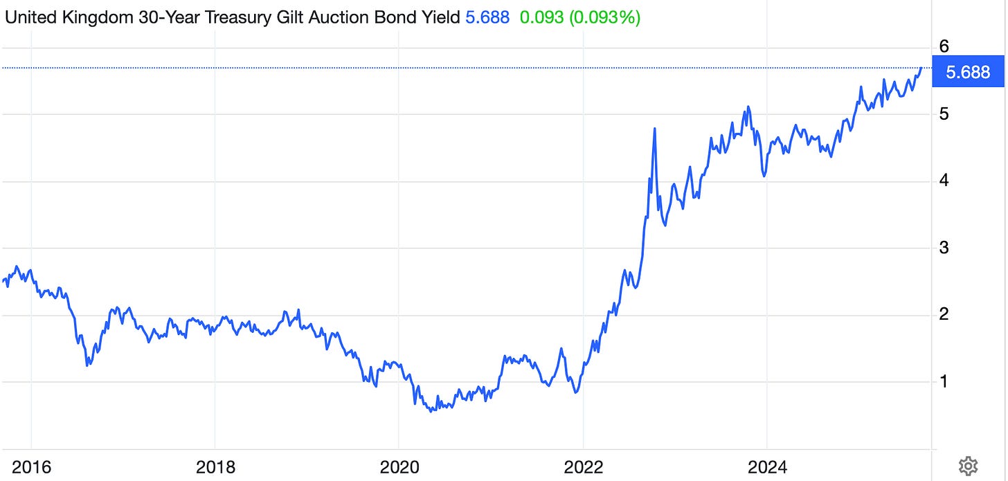 No snapshot says more about Britain’s fiscal crisis than the soaring yield on the long gilt. One glance at the chart says it’s going far higher. Welcome to a classic debt trap!