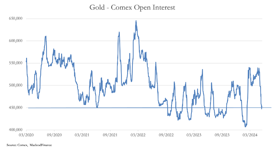 But the clincher is the rate at which physical metal is draining from western vaults. According to Doug Casey’s Substack latest post, huge premiums in Shanghai are draining western vaults, with LBMA’s vaulted silver stocks falling 60% this year so far, and Comex’s falling by 46%. Gold’s drain has been less dramatic perhaps, but recent days have seen record stand-for-deliveries. In the last eight trading sessions, nearly 90 tonnes of gold have been stood for delivery taking the total so far to 253 tonnes, a rate which easily exceeds this year’s US gold mine annual output estimated by Metal Focus at 166 tonnes.