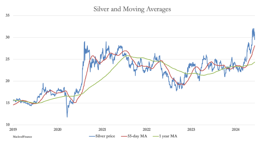 Technicians would argue that the silver price is still too far above its moving averages for comfort. It would be wrong to dismiss these concerns out of hand, but there are more important forces at play.