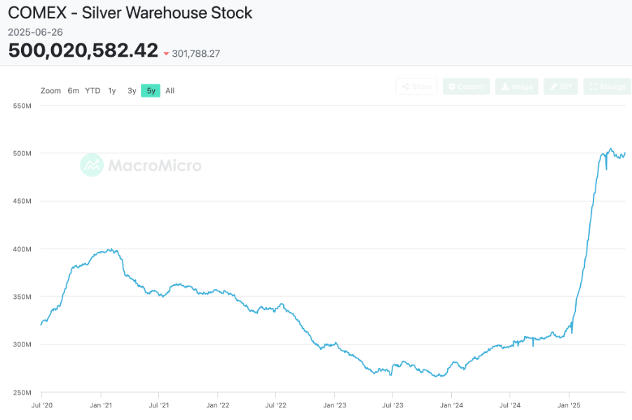 Meanwhile, Comex warehouse stocks have held up as the Macromicro chart shows. This is next: