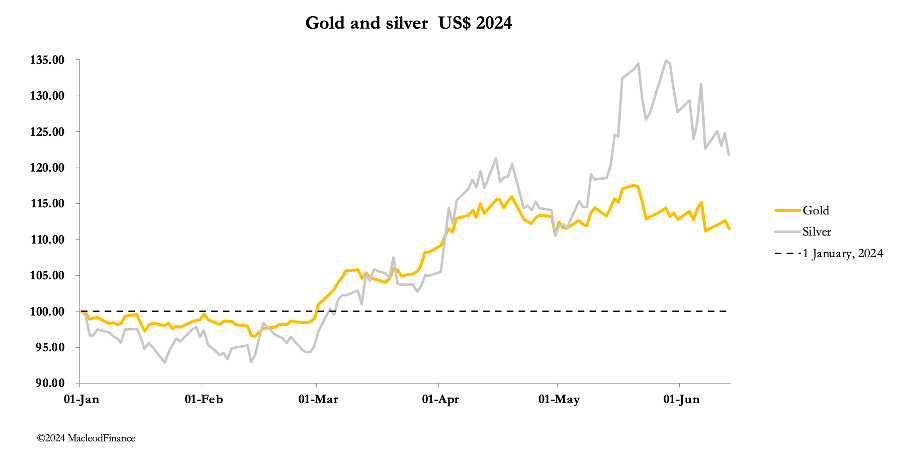 It is almost always the rule that investment sentiment is low at the depths of a bear market, and high in a bull market. But bizarrely, that is not the case here. The explanation lies in a monetary phenomenon, whereby foreigners are the first to recognise the weaknesses in a fiat currency, so will reduce their exposure to fiat credit seeking the safety of gold. The domestic users of the currency are the last to recognise the risks to it, seeing it primarily as a stable means of exchange. This blindness is not limited to day-to-day exchanges of goods and services but extends to the heart of financial services and the psychology of their practitioners as well.