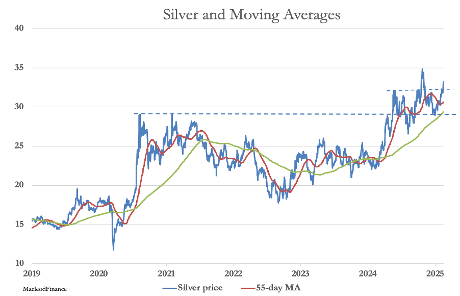 More importantly, silver has conquered a crucial chart level at $32.50: