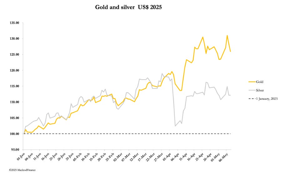 After the post-liberation day volatility, all markets seek direction. However, the signs are that the negative trend for equities and bonds, and positive trend for PMs will continue in time.