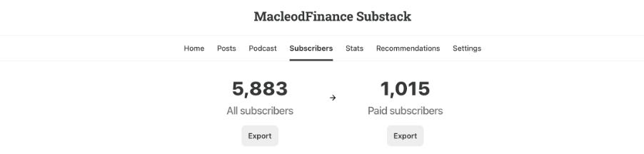 In less than five months, MacleodFinance Substack has attracted nearly 6,000 subscribers, of which over 1,000 are paid. A big thank you to you all!