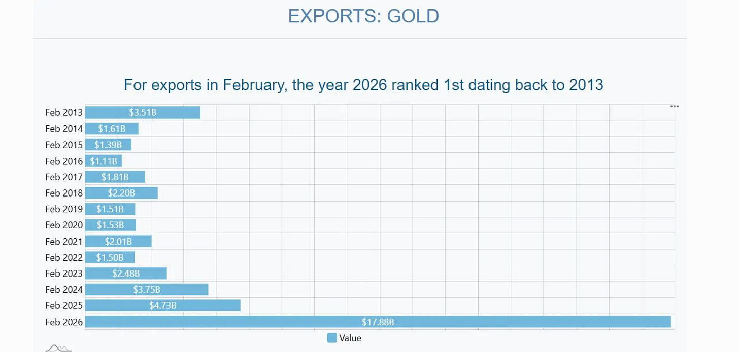 Additionally, US gold mine output is not recorded in the Comex statistics, but is going predominantly to Switzerland for refining into Chinese standard bars to be sent on to guess where? The next chart from Forbes published on April 7 puts the accelerating gold drain even more graphically:
