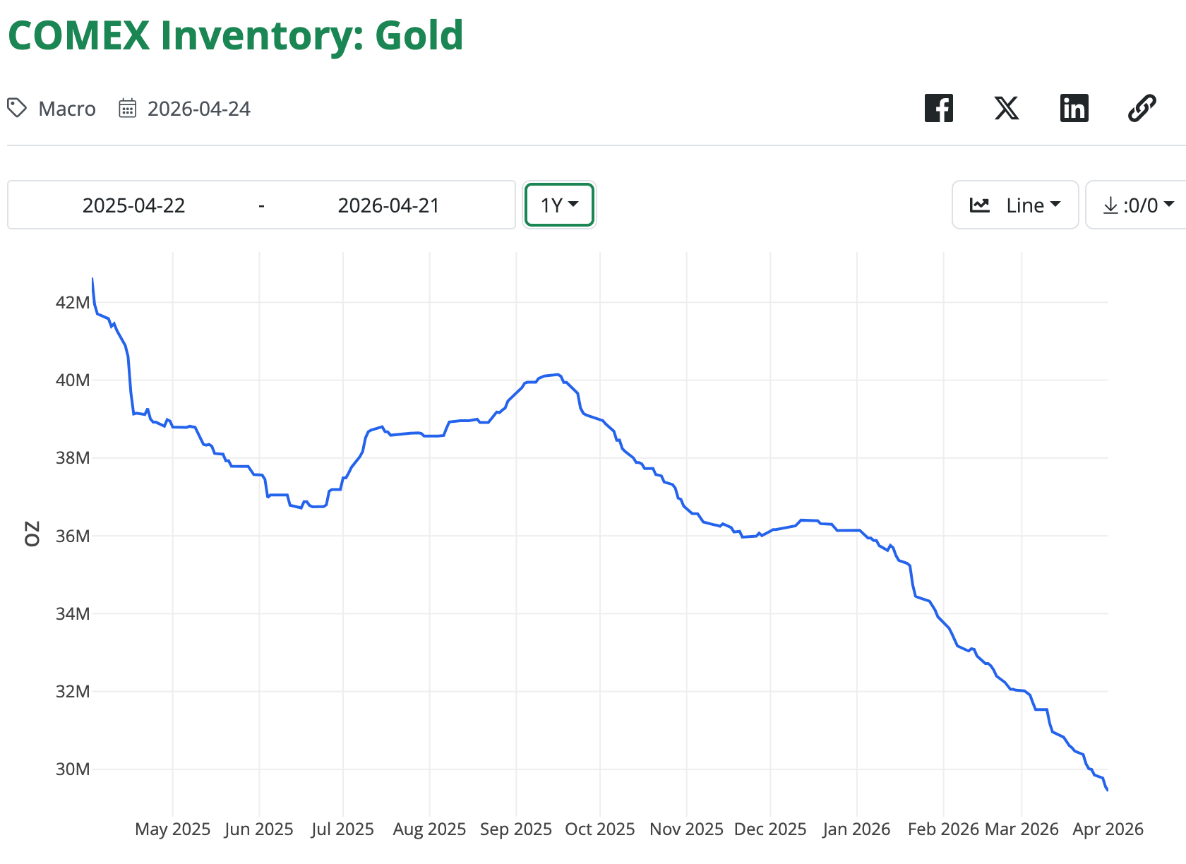 The disinterest from traders is against a background of persistent US exports of gold, reflected in Comex warehouse stock levels: