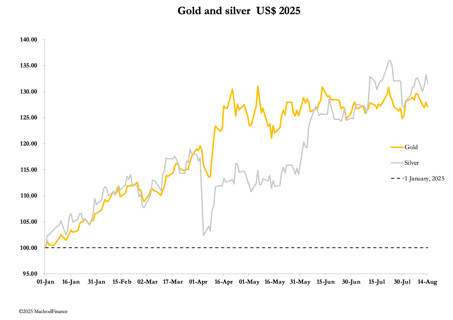 Any independent observer will note that the outlook for the dollar is deteriorating, credit risk rising, and a debt trap is being sprung on the US Treasury. Tonight’s Alaska circus is a diversion from this reality.