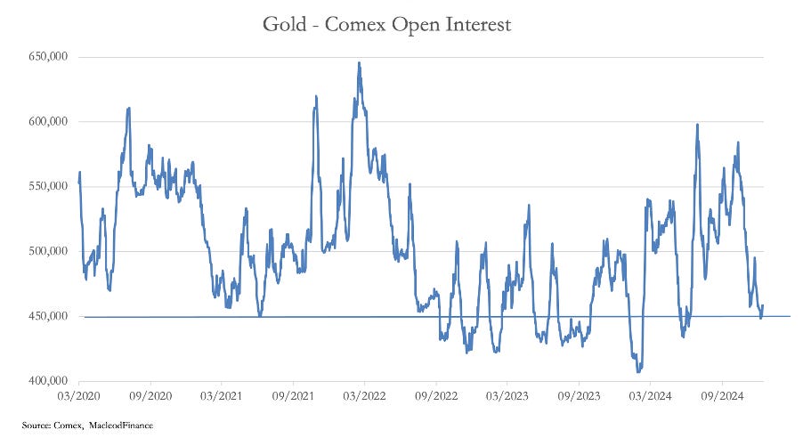 While Comex Open Interest in silver has held steady, in gold it has sold off to oversold levels. This is next.