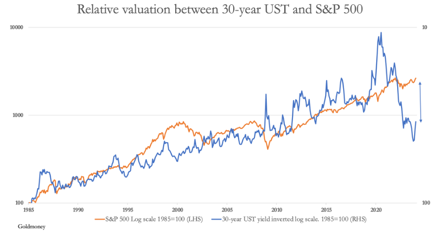 Subsequently, gilt yields rose to even higher levels, with the ten-year gilt yield hitting 4.75% last August and the 30-year 5.07% without the LDI panic returning. Obviously, that episode alerted pension fund managers to the dangers, and they will have addressed their LDI risk accordingly. But the same cannot be said for the wider use of collateral in international markets, for which the 10-year US Treasury note is the “risk-free” yardstick.