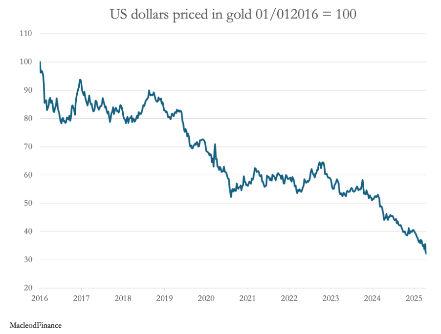 Since only 2016, by this measure it has lost 78% of its purchasing power for foreign holders. This is a far cry from the government’s own inflation statistics, slavishly followed by investors, economists, the media, and politicians alike. And because investors like to record their asset values in dollars or their own currencies, they are oblivious to this debasement. And consumers observe merely that prices are rising, not their currency declining which they would do well to understand.